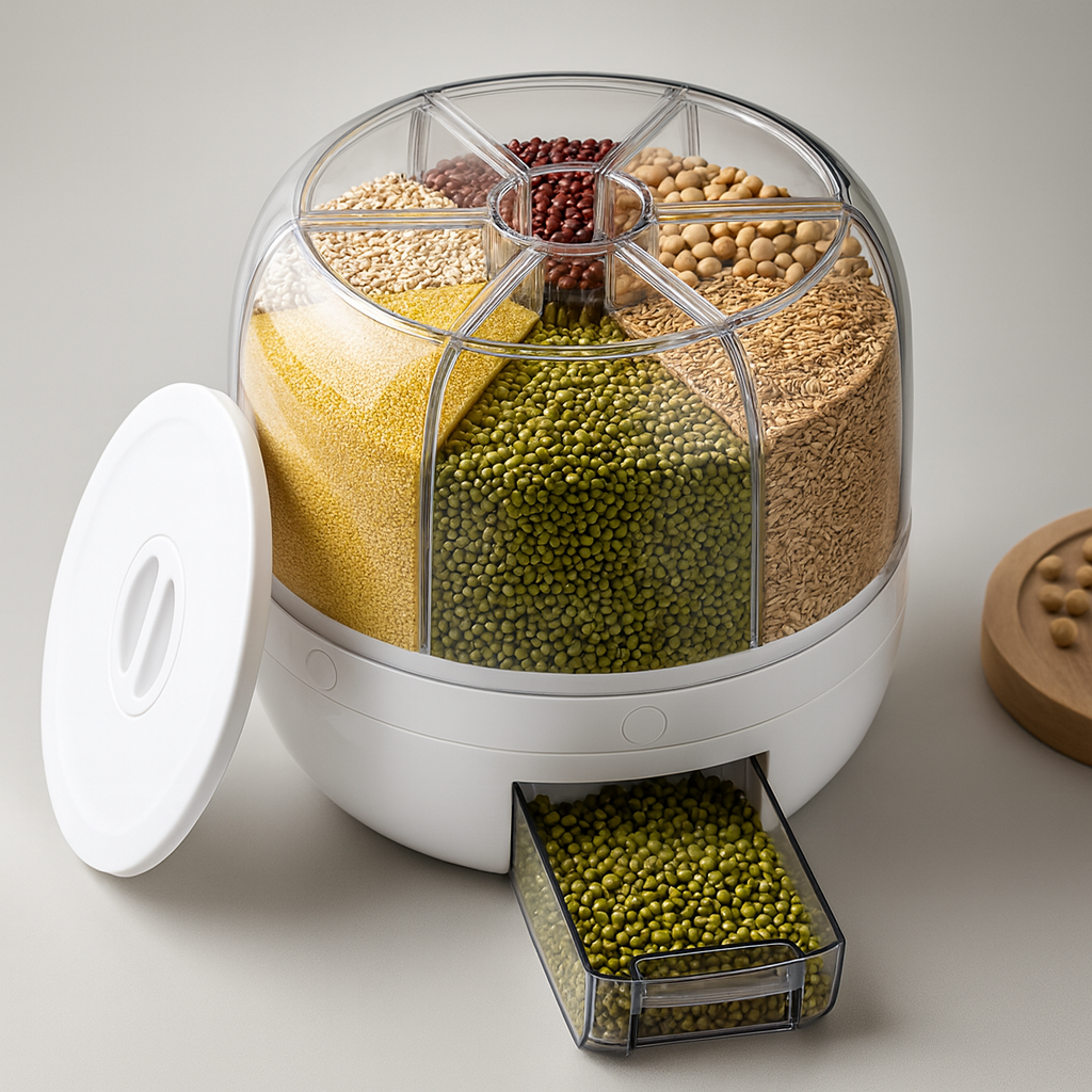 Mantén tus granos y condimentos ordenados, protegidos y siempre listos para usar en un solo contenedor práctico y funcional.
