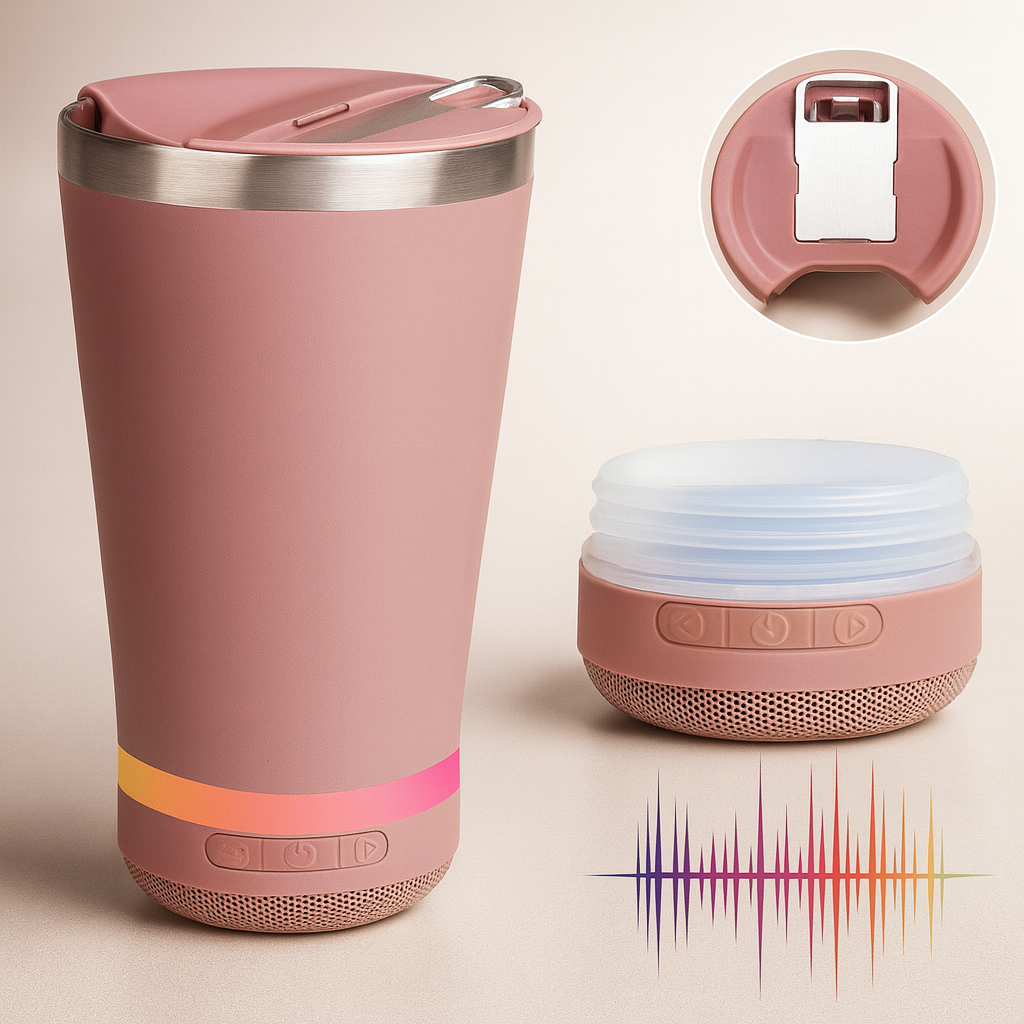 Mantiene tu bebida a la temperatura ideal, reproduce tu música con su bocina Bluetooth, no se derrama y es perfecto para llevar en el auto o a cualquier lugar. Un accesorio práctico, moderno y listo para acompañarte todo el día.